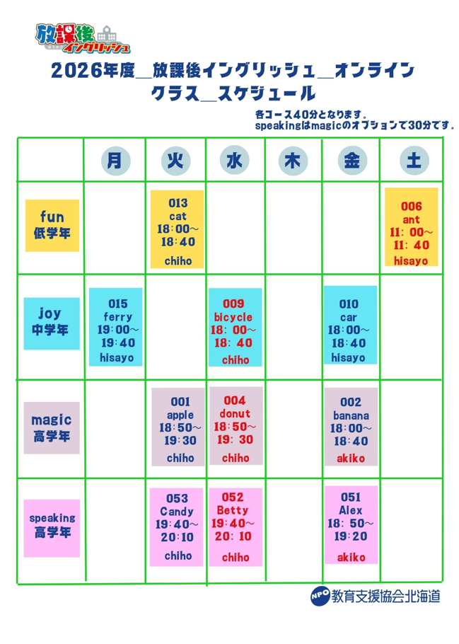放課後活動参加者の諸手続き・スケジュール確認ページです